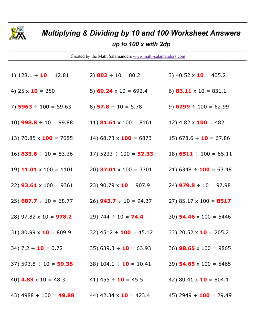 Multiply And Divide By 10 100 from www.math-salamanders.com