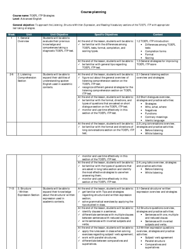 Toefl Itp Strategies Course Planning2 Pdf Test Of English As A Foreign Language Reading Comprehension